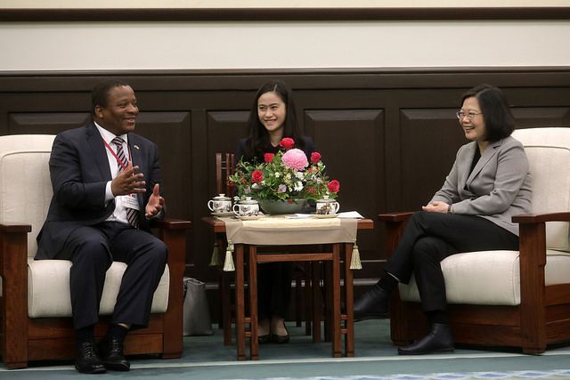 訪團一行由外交部長李大維、史瓦濟蘭駐臺大使戴敏尼(Thamie Dlamini)陪同,前來總統府晉見總統,總統府秘書長吳釗燮也在座。