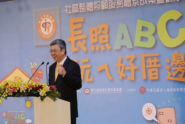 副總統指出,政府藉由醫療、長照、預防保健資源的整合,推動在地老化、健康老化、活躍老化,使長照中心是找得到、看得到、用得到,而且負擔得起的。未來也將布建469處「社區整合型服務中心(A)」、829處「複合型服務中心(B)」,以及2,529處「巷弄長照站(C)」。