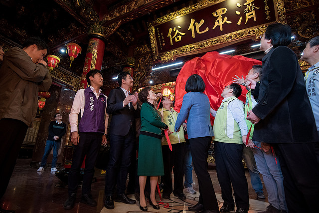 蔡英文總統今(22)日下午出席基隆慈雲寺揭匾儀式,祈求臺灣風調雨順,國泰民安,並請鄉親與政府一起努力,共同為臺灣打拼。