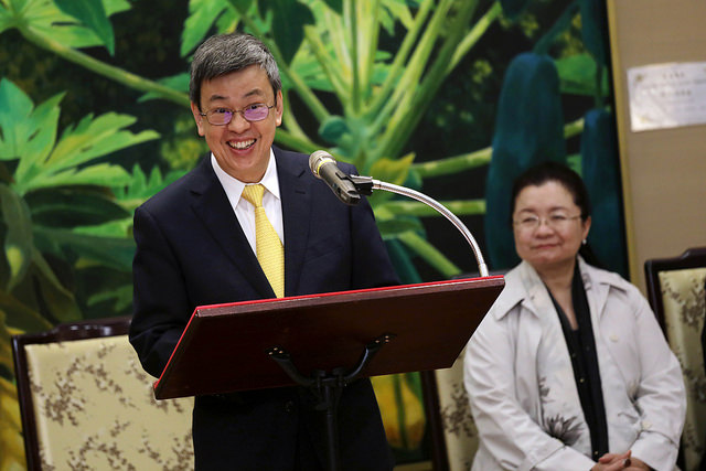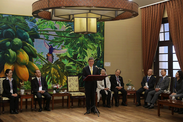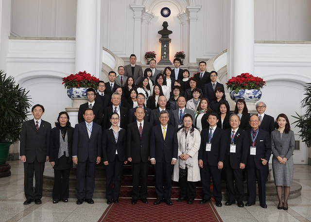 訪賓一行由參訪團團長暨大阪中華學校理事長連茂雄率領、僑務委員會副委員長田秋堇陪同,前來總統府拜會副總統。
