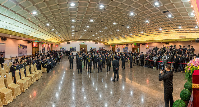 今天是各位榮耀的日子,請大家好好和家人分享這份榮耀。但是,各位身上的責任又更加重大了,接下來國家的安全,還要仰仗各位將軍,謝謝你們,繼續加油。