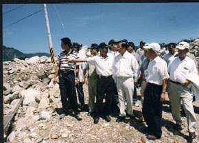 總統前往南投視察九二一災後重建工作