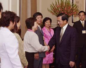 海外華僑在中華民國創建及發展過程中,一向扮演舉足輕重的角色;台灣今天的自由與民主成就,愛國僑胞的堅定支持及熱心參與功不可沒。藉此機會,阿扁要再次重申政府照顧及服務海外僑胞及台商的決心,也希望各位僑社領導人返回僑居地時,代為轉達本人及政府的關懷感謝之意。