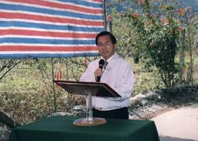 前年九二一震災,給台灣中部地區帶來相當大的創傷,山坡地更是嚴重。記得當時阿扁看到的是土石崩塌、水管斷裂、果樹傾斜的景象,可以用滿目瘡痍、慘不忍睹來形容。但是經過近兩年來的努力,新社鄉已經擺脫災區的景象,重建後的中興嶺,已經恢復往日的舊觀。阿扁也再度看到新社鄉鄉親們充滿自信的笑容,充分展現台灣人「打斷手骨顛倒勇」,不屈不撓的精神。