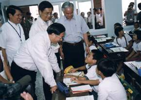 剛才,大家也一起拜訪過協成國小,這是經由台塑企業認養的重建學校,阿扁在孩子的眼神中,再一次看到我們九二一校園重建的希望、看到我們「新校園運動」精神的具體呈現。這場百年大震,震動著我們的百年大計,但是,我們也得到了這個百年難得的機會。試想,在這塊地震災區,同時有將近三百所的學校在重建,台灣的生命力從來沒有像這個時空裡如此地集中、如此地活躍,讓我們重新認識台灣、重新感謝彼此、並且和孩子們共同成長的機會。