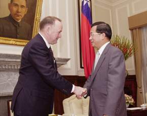 陳總統水扁先生今天上午接見「世界清潔組織」創辦人伊恩基南先生(Ian Kiernan),並歡迎他來到台灣訪問。