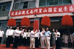 陳總統水扁先生今天上午應邀參加交通部觀光局阿里山國家風景區管理處設立典禮,總統於致詞時首先表示,今天來阿里山的途中,心裏浮現的是阿里山的日出、雲海、神木和森林鐵路,口中哼著青年時代耳熟能詳的高山青曲調,相信大家也都一樣,因為這是生長在台灣的你我,對阿里山的共同記憶。由於嘉義鄉親熱切的盼望,行政院決定讓阿里山的定位從過去以林業為主,轉型為綜合性的觀光發展來帶動地方經濟,這不僅是嘉義地區的大事,也是國家發展觀光的重要里程碑。