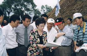 呂副總統秀蓮女士今天偕同水土保持的專家學者前往南投縣竹山鎮秀林里、水里鄉玉豐村、埔里鎮過坑農路等土石流嚴重地區勘察,並在埔里天水蓮飯店座談,希望能協助地方防治土石流,為國土維護盡一份心力。
