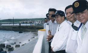 台灣是災難頻繁的島嶼,今年除了奇比颱風,潭美、桃芝等颱風,也在短短一個月內侵襲台灣,造成高雄縣市、南投、花蓮等地區幾乎破歷史紀錄的損害。阿扁內心感同身受,也希望各位鄉親務必打起精神,和政府一起努力。只要有信心,相信在最短時間內,不但能夠恢復澎湖縣的原貌,更能創造各位澎湖鄉親的生機與商機。政府也會秉持「離島,不離心」,「將心比心」的精神,將離島的建設與生活環境改善列為重要施政項目,讓全國有著均衡而適合的發展。