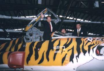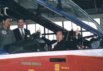 看到漢翔公司的成就,個人感到相當欣慰,漢翔不但肩負著我們國家自主戰機的性能與戰力提昇的重大任務,更特別勇敢地面對企業化、國際化、民營化的挑戰。個人要深深勉勵漢翔公司的全體同仁,因為,這正是艱辛之處,正能夠展現「自立自強」的信心!本人很高興能前來參與這個交機典禮,更希望能夠繼續分享各位的喜悅與光榮,讓我們一起有所期許、有所打拼,恭喜大家,祝福各位!