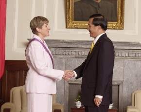 總統並推崇蘇副處長不僅是傑出的外交官,也是美國人民在台的親善大使,現在她即將離台升任美國駐蒙古共和國大使,證明她在駐台期間之卓越表現亦備受美方高層肯定,他深盼蘇副處長就任新職後,能一秉熱誠,持續關切台美相關議題,並且與我駐蒙古代表處同仁密切聯繫,為增進台、美、蒙三邊共同利益作出具體貢獻。