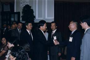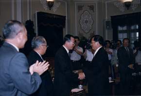 九十年全國模範公務人員代表上午由行政院院長張俊雄、考試院院長許水德、考選部部長吳容明、考試院秘書長許慶復及行政院人事行政局局長朱武獻陪同,前來總統府晉見總統。總統府副秘書長陳哲男也在座。