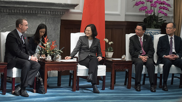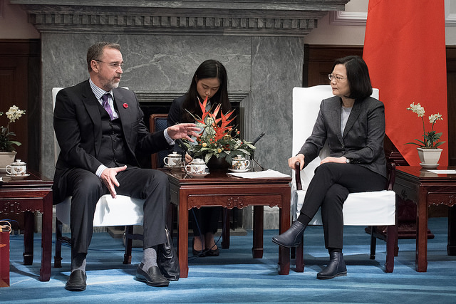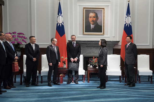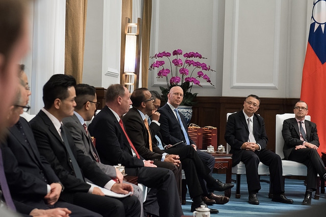 總統告訴訪賓,去(2017)年臺灣參加「選擇美國投資論壇」所組成的隊伍,是有史以來最大。在那之後,也有許多臺灣企業表達在美國投資的意願。同樣地,我們也看到很多美國企業可以跟臺灣結盟的機會。例如,臺灣正藉由「5+2產業創新計畫」以及「新南向政策」,推動產業和經濟格局的轉型,創造許多可以和美國企業合作的機會。過去一年來,臺灣的GDP成長、就業率,以及股市的表現都超越預期。最重要的,在新創、綠能,以及國防等產業上的新投資,也逐漸創造優質的工作機會。