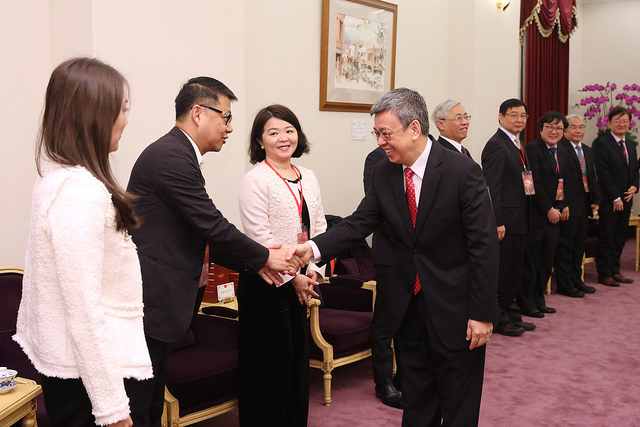 得獎團隊代表一行由生策會副會長楊泮池率領,衛生福利部次長薛瑞元陪同,前來總統府拜會副總統。