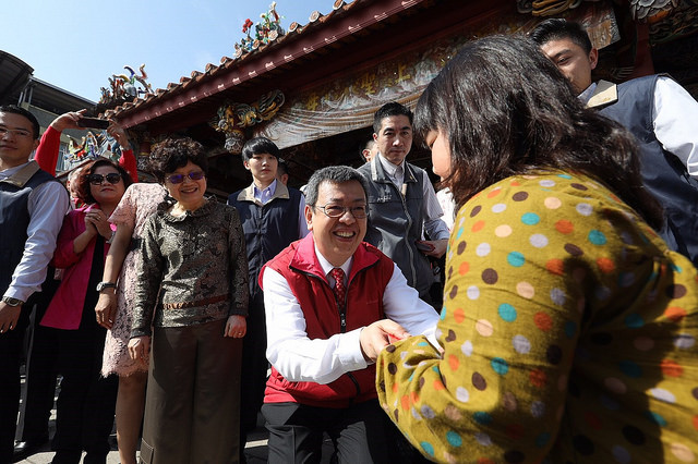 今(18)日是農曆大年初三,陳建仁副總統伉儷特別回到故鄉高雄,在旗山天后宮發送狗年福袋向鄉親賀年,祝福大家新春快樂,身體健康,家庭幸福美滿。