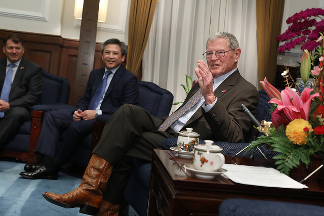 蔡英文總統今(21)日上午接見美國參議院「臺灣連線」共同主席殷霍夫(James Inhofe)及參眾議員訪問團,除感謝訪賓們長期在國防、國際事務以及高層互訪等議題上,大力支持臺灣,也強調臺灣將持續找尋更多的合作機會,與美國共同努力維護印太區域的和平與繁榮。
