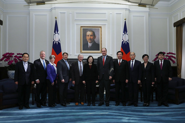 總統致詞時表示,本(2)月初美國參議院外交委員會通過了《臺灣旅行法》,她藉此機會感謝訪賓們長期以來在國防、國際事務以及高層互訪等議題上,大力支持臺灣。他們的努力是臺美關係中最堅定的支持,讓臺美成為彼此信賴的夥伴,「謝謝你們為臺灣所做的一切」。