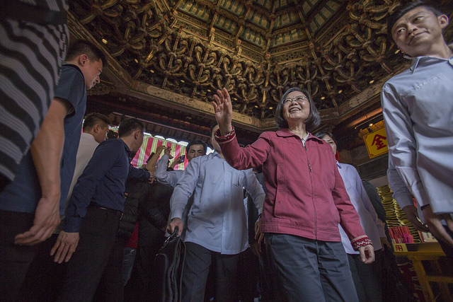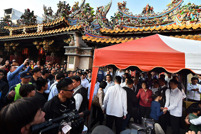 蔡英文總統今(24)日前往雲林北港朝天宮祈福參拜,祈求風調雨順、國泰民安,並發送福袋向民眾拜年。