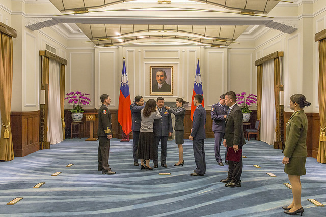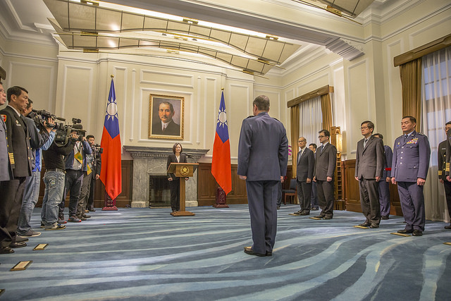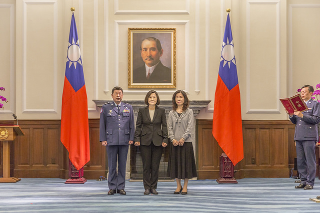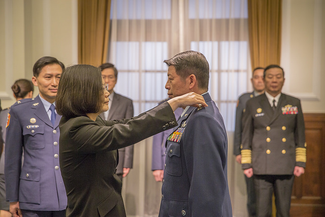 蔡英文總統今(1)日上午主持「國軍重要高階幹部晉任布達授階典禮」時強調,面對國家安全的威脅,空軍責無旁貸,務必嚴密監控敵情。同時她也期勉空軍在張司令的帶領下,前瞻思考如何確保未來的空防,並配合國防自主的原則,建立下一世代的空軍戰力。
