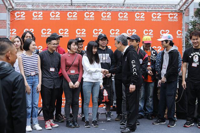 副總統也表示,「C2幫特展」是創作展,由音樂人與視覺藝術家兩兩配對、跨界合作,以音樂內容為創作主題,再由視覺藝術家彩繪在水塔上。由於水塔是臺灣生活的日常,也是許多家戶頂樓常見的裝置,更是一種臺灣意象。事實上,水塔把水從平地上抽起來,再送到每戶人家,就像此次藝術創作,藝術家從自己生長的土地吸取能量,發揮並儲存在水塔上。