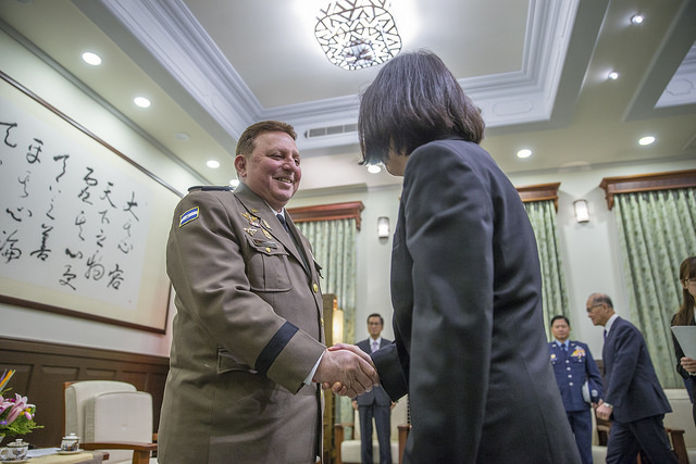 蔡英文總統今(12)日上午接見「尼加拉瓜三軍總司令阿比烈斯(Julio César Avilés Castillo)上將」,說明臺尼兩國在軍事、經貿、農業及醫療等領域之合作成果,也期盼未來臺尼持續深化雙邊交流與情誼。