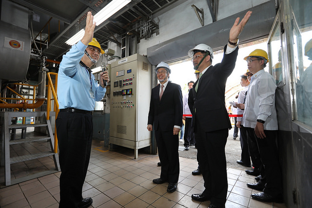 副總統表示,臺中市政府所推動加速汰換老舊燃油鍋爐的政策相當成功,因此,環保署在討論如何減少PM 2.5時,就以臺中市為典範,堪稱是臺灣空氣污染防制的領頭羊。他表示,烏日廠區內有3座重油鍋爐已陸續改用天然氣,希望烏日啤酒廠帶起示範作用,並分享經驗讓更多工廠業者瞭解,以加快燃料轉換速度,改善臺中空氣污染的問題。