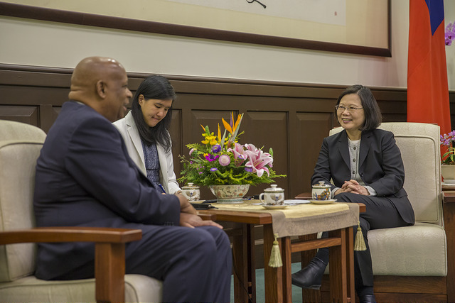 訪賓由外交部次長劉德立陪同,前來總統府晉見總統,國家安全會議秘書長李大維也在座。