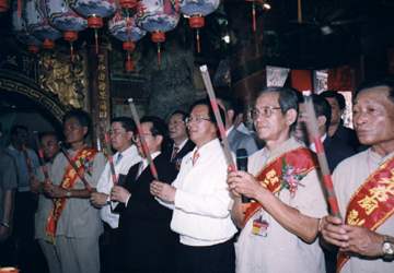 稍後,總統也到高雄市左營元帝廟上香祈福,並敬獻「福澤廣被」匾額,總統致詞時表示,宗教是建立祥和社會的重要基礎,在道教的基本教義中,主張「尊天法祖,利物濟世」,鼓勵世人順符自然、效法先賢、尊重生命、福利蒼生,深具社會教育意義。尤其近年來,社會的發展,已由傳統、單純的社會,走向了現代化、多元化的社會,雖然科學昌明,資訊發展,物質生活豐富,但是民眾的精神生活反感空虛,對道德倫理的規範更趨薄弱。因此,若能藉由宗教的教義和理念來淨化人心,充實心靈生活,相信對社會的安定、國家的進步,必能產生潛移默化的功效。