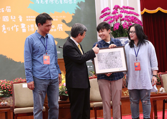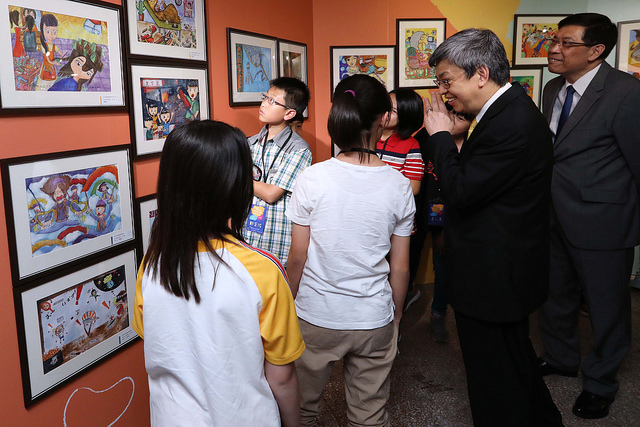 副總統除了感謝家長及學校老師的付出與努力,也肯定臺中市政府舉辦並支持孩子參與這樣的創作活動,過去25年以來,每年要寄出50萬份畫紙,是相當不容易的堅持。
