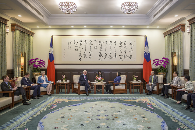 訪賓一行由外交部次長吳志中及英國在臺辦事處代表唐凱琳(Catherine Nettleton)陪同,前來總統府晉見總統,國家安全會議秘書長李大維在座。