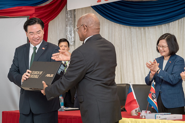 隨後,總統見證我國宏碁公司捐贈平板電腦100臺、華碩文教基金會捐贈平板電腦及筆記型電腦各100臺予史國政府,我方由外交部長吳釗燮代表捐贈,史方則由教育暨訓練部部長馬谷拉代表接受。
