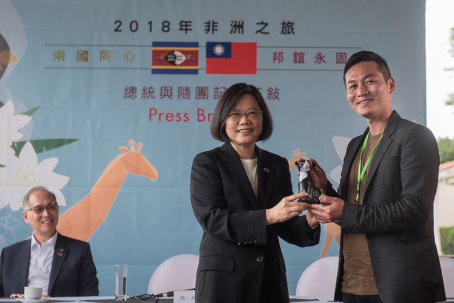 蔡英文總統於4月20日(週五)上午(臺北時間20日下午)於史瓦濟蘭下榻旅館與隨團記者茶敘,說明此行成果,也回應隨團記者提問。