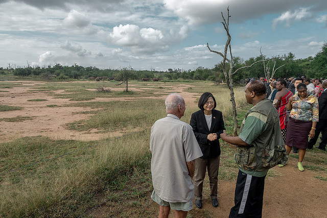 蔡英文總統於4月20日(週五)午間(臺北時間傍晚),在史瓦濟蘭國王恩史瓦帝三世(King Mswati Ⅲ)陪同下,前往Hlane 皇家國家公園參觀野生動物,體驗道地非洲風情,隨後總統並與國王便餐,席間兩人互動熱絡,現場氣氛歡愉。