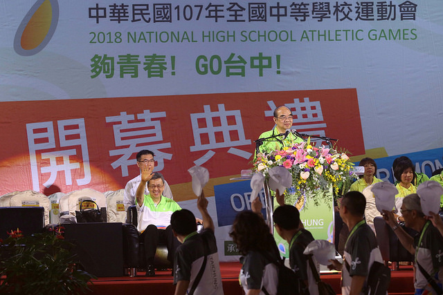 陳建仁副總統今(21)日傍晚出席「107年全國中等學校運動會開幕典禮」,期勉選手們秉持「勇於挑戰、永不放棄」的精神,不斷挑戰自我、締造佳績,成為臺灣人民的榮耀。