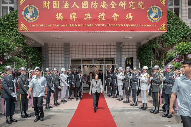 蔡英文總統今(1)日上午出席「財團法人國防安全研究院」揭牌典禮時,除對國防安全研究院提出「要協助政府掌握戰略情勢變化」、「要廣納戰略研究人才」及「要成為對外交流、互動及合作的平台」三項期許,並對我國與多明尼加終止外交關係發表談話表示,臺灣確實面對嚴峻的外交情勢,政府不會以犧牲主權、犧牲人民尊嚴的方式,去委曲求全。