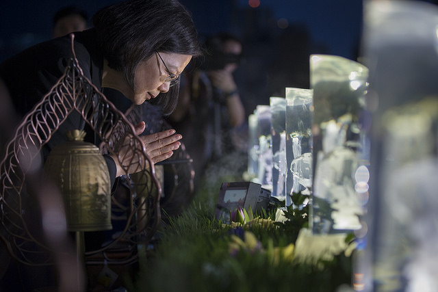 今天是母親節,也是一年一度佛誕節,「佛教慈濟基金會」晚間於兩廳院藝文廣場舉辦「2018佛誕浴佛孝親感恩祈福會」,蔡英文總統親臨禮佛。