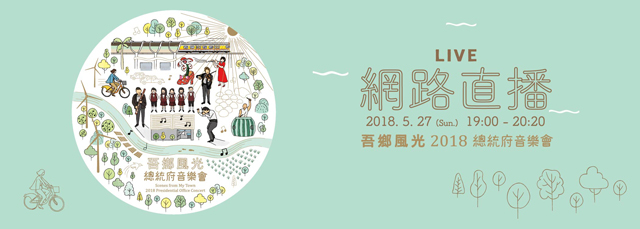 為讓更多國人親身聽見、看見臺灣豐沛的藝術能量,總統府今年將再度走入地方,於5月27日(週日)下午7時至8時20分在彰化縣員林演藝廳舉行「吾鄉風光-2018總統府音樂會」,總統府全球資訊網及總統府Youtube頻道同步播出音樂會演出實況。