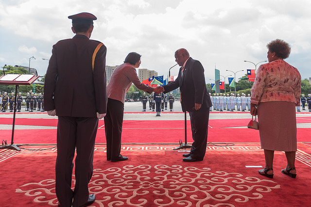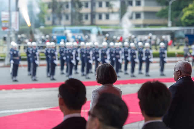 總統致詞時表示,很榮幸以盛大的軍禮,歡迎何瑞朗總理率團來訪,這是總理第一次訪問我國,她要代表臺灣人民,向遠道而來的朋友,表達最誠摯的歡迎。