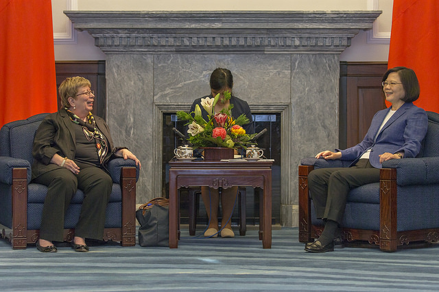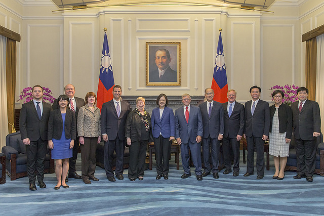 總統指出,臺灣身為印太區域負責任的一員,一直努力強化在區域的角色,也積極推動新南向政策,希望跟區域內國家共同創造繁榮發展。同時,我國也不斷致力於提升臺美關係。今(2018)年6月,政府將再次派遣大規模的代表團前往美國華府,參加「選擇美國」(SelectUSA)投資高峰會。