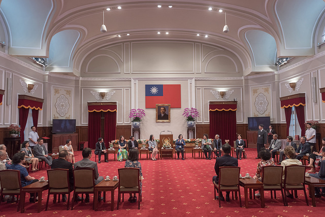 訪賓一行由僑務委員會委員長吳新興陪同,前來總統府晉見總統,總統府秘書長陳菊也在座。