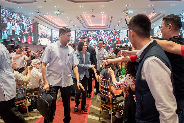總統也表示,臺灣正在進步,請大家「心頭一定要抓乎定」。近來在網路及社群媒體上,有很多假消息出現,「在唱衰臺灣」。只要我們在國際上有突破,中國就越想打壓臺灣。她認為,這些人越緊張,越不安,就代表我們真的做出成績,臺灣確實是在往前走。在場都是地方重要的意見領袖,如看到在LINE群組亂傳的假消息,請大家一定要對臺灣有信心,一定要為臺灣辯護。