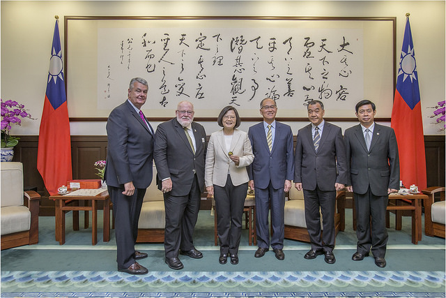 對於他們長期支持臺灣,總統表達感謝,並表示,美國在區域的和平穩定上,一直以來扮演重要角色。不僅透過《臺灣關係法》,售予我們防禦性武器之外,相關的安全合作與承諾,也對穩定臺海和平的區域情勢,有高度的重要性。此外,近期通過的《臺灣旅行法》更是臺灣和美國高層官員進一步交流與互訪的重要里程碑。