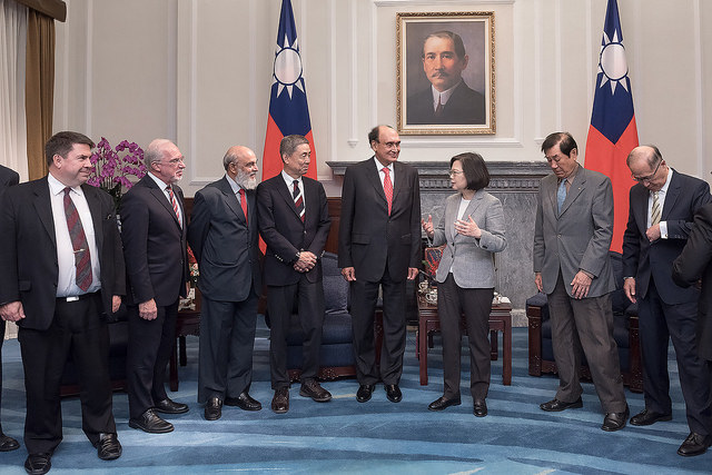 訪賓一行包括來自印度、日本、美國、澳洲、新加坡、馬來西亞、越南、印尼及菲律賓等國之專家學者,由遠景基金會董事長陳唐山及外交部次長謝武樵陪同,前來總統府晉見總統,國家安全會議秘書長李大維也在座。