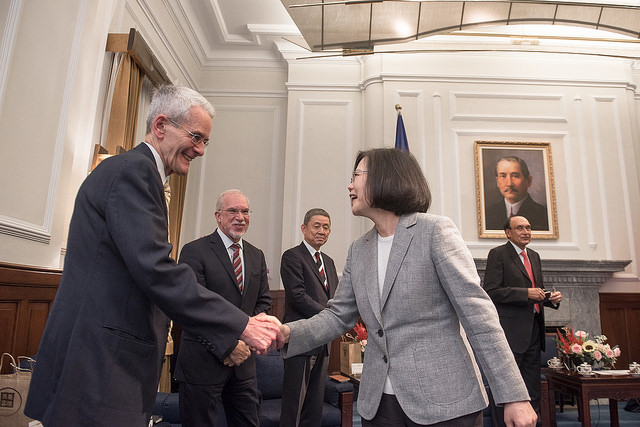 蔡英文總統今(31)日上午接見「福爾摩沙論壇:2018海事安全對話」外國專家學者,重申中國政府罔顧區域穩定的做法,國際社會並不樂見,對兩岸關係的發展也沒有好處。儘管受到壓力,臺灣仍然會盡全力,為區域的和平、繁榮和穩定做出貢獻。
