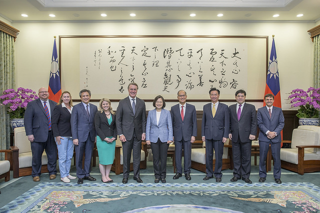訪賓一行由外交部長吳釗燮及美國在台協會台北辦事處處長梅健華(Kin Moy)陪同,前來總統府晉見總統,國家安全會議秘書長李大維也在座。
