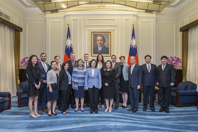 訪問團一行由外交部長吳釗燮陪同,前來總統府晉見總統,國家安全會議秘書長李大維也在座。