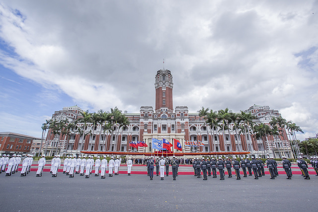 軍禮歡迎儀式於上午10時在總統府前廣場舉行,在鳴放21響禮炮、演奏兩國國歌及檢閱儀隊後,蔡總統與恩史瓦帝三世國王分別致詞。