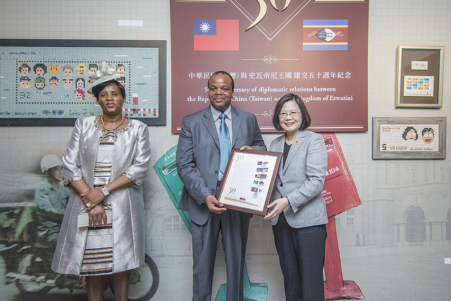 史瓦帝尼王國恩史瓦帝三世國王(King Mswati Ⅲ)今(8)日率團來訪,在兩國元首會談及見證簽署「臺史經濟合作協定」後,總統偕同國王暨王妃至總統府郵局出席「臺史建交50週年紀念集郵票品贈送儀式」。