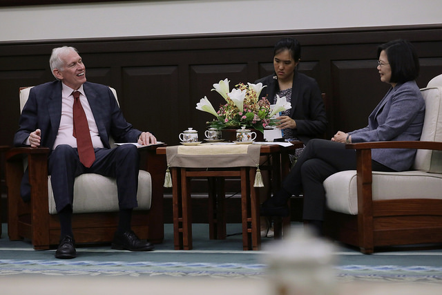 訪賓一行尚包括美國在台協會台北辦事處處長梅健華(Kin Moy)、美國在台協會執行理事羅瑞智(John Norris)及美國國務院亞太局臺灣協調處處長何樂進(Jim Heller)等,由外交部部長吳釗燮及駐美國代表處大使高碩泰陪同,前來總統府晉見總統,國家安全會議秘書長李大維也在座。