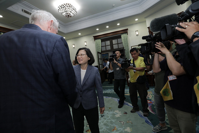 總統說,面對這樣的挑戰,她要感謝包括美國在內理念相近的國家,在國際場合上對臺灣的支持。尤其,當中國壓迫航空公司更改臺灣名稱時,美方能仗義執言,讓臺灣人民感受到美國的友誼。